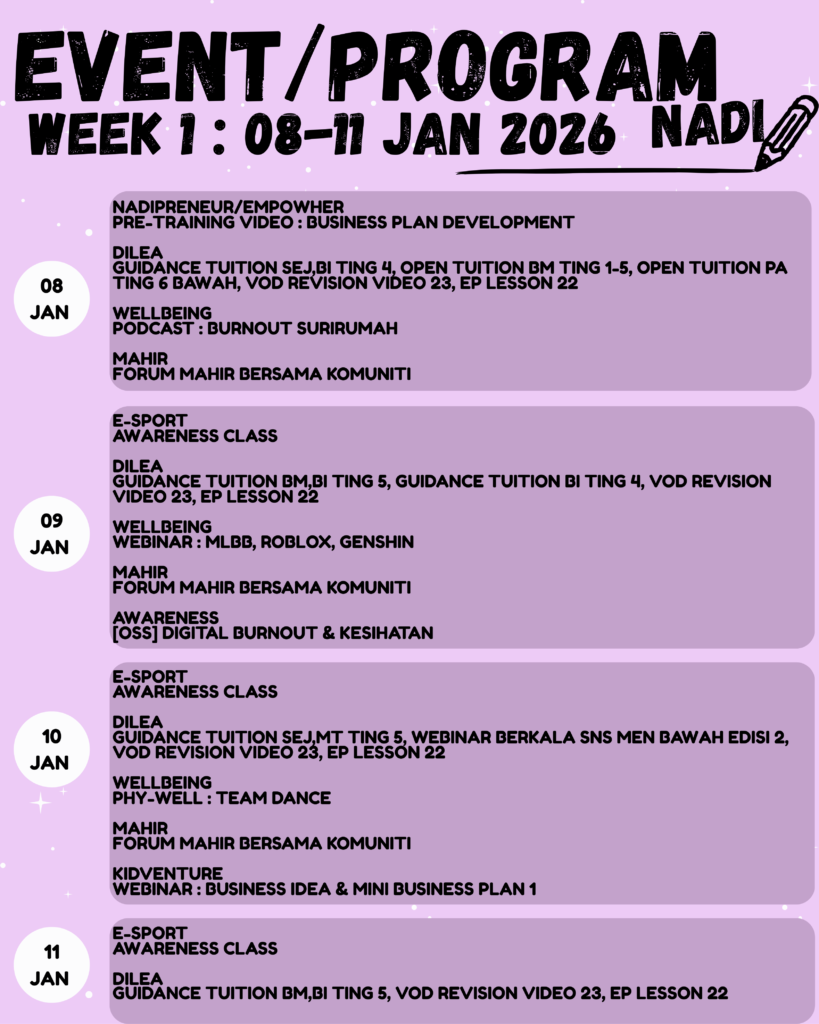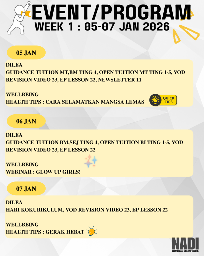 Jadual mingguan (05-11 Januari 2026)